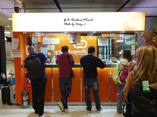 以前甚至要跑到 Central World 的 Super Rich 去換錢,但現在在素萬那普機場 B2 就有 Super Rich 櫃台,可以拿台幣或美金去兌換泰銖,用美金換泰銖會比用台幣換泰銖的匯率好一點點,台幣建議帶 $1000 鈔票,美金建議帶 $100 鈔票