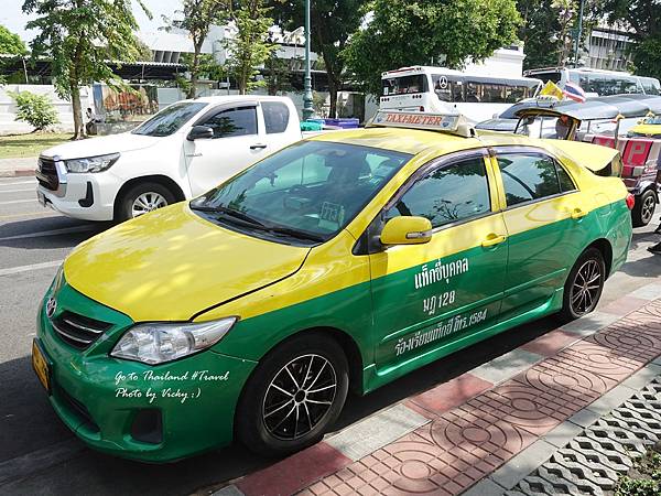 曼谷計程車顏色很多,有黃綠色相間、藍色、綠色、桃紅色、橘色等,黃綠相間的車是司機自己的車,其他顏色則是司機和車行租借的