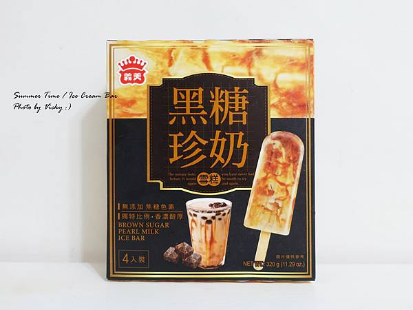 台灣本土老字號義美推出的 "黑糖珍奶雪糕",黑糖味道很濃郁,珍珠大約都集中在雪糕上方 2/3 的部分