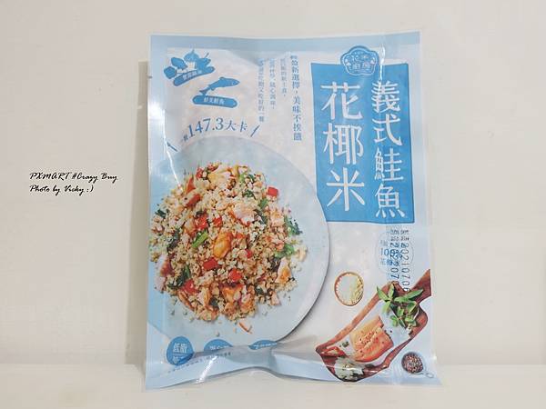 全聯有賣義式鮭魚花椰米和雞肉的,我選了義式鮭魚花椰米,有點小失望是鮭魚的份量很少,反而是碎肉比較多,對於比較愛鮭魚的我,這有點扣分 ![]()