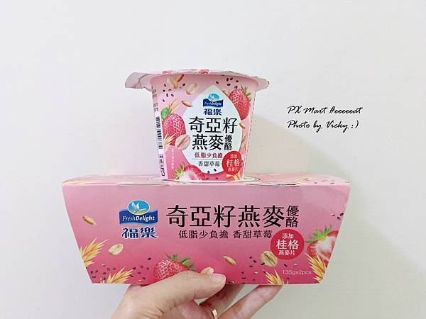 這款優格是有加奇亞籽和燕麥,比較有口感,吃完也會比較有飽足感,當早餐吃是個好選擇,不到 100 大卡,有原味、草莓和蘋果口味,我喜歡草莓口味
